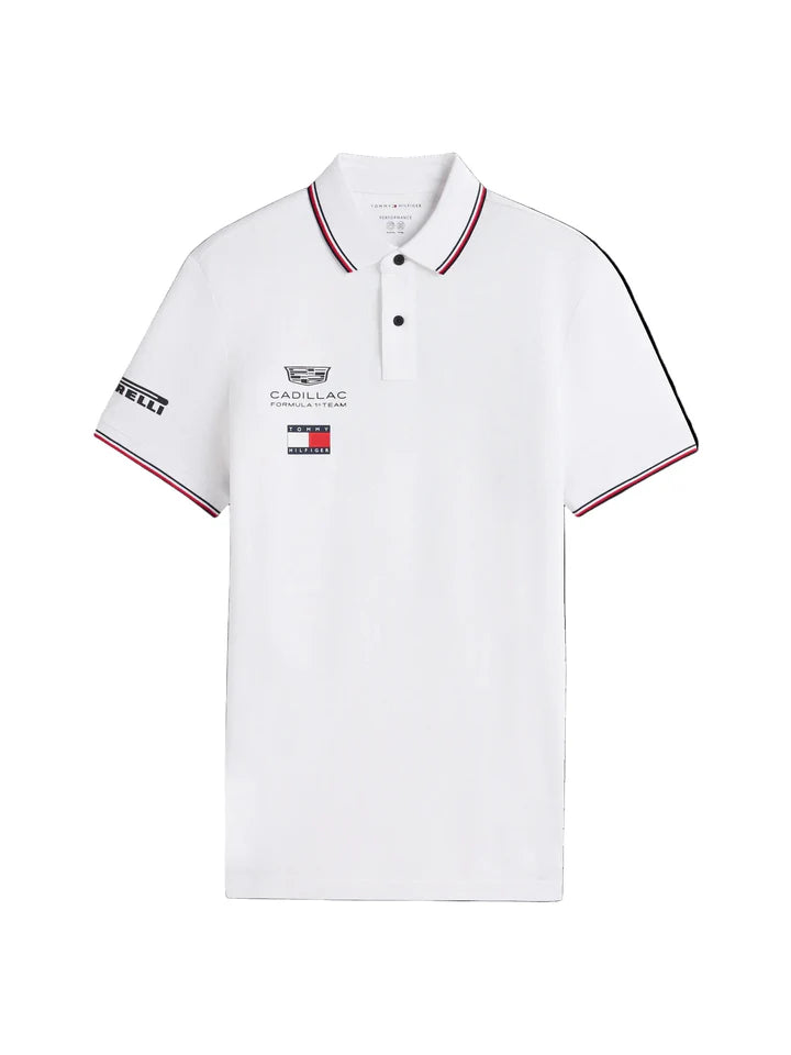 Made from soft, breathable cotton with a structured collar and button placket, it delivers timeless comfort and effortless versatility. Featuring bold, race-ready detailing and authentic co-branding from Tommy Hilfiger x Cadillac Formula 1 Team, this polo brings premium racing flair to your wardrobe.